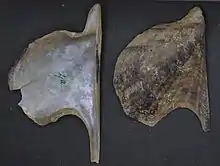 | Huître creuse Autres noms : huître anguleuse, huître griffée Famille : Ostreidae Espèces consommées : Crassostrea rhizophorae[14], C. sikamea[15], C. tulipa, C. virginica, Magallana angulata, M. ariakensis, M. bilineata, M. gigas, M. hongkongensis, M. rivularis | L'Huître portugaise (Magallana angulata), rejetée dans l'estuaire de la Gironde le 14 mai 1868 par un navire nommé le Morlaisien, a été élevée au cours du XXe siècle en France pour remplacer l'Huître plate. Une épizootie l'a décimée dans les années 1970. La majeure partie de la production en France concerne l'Huître japonaise (Magallana gigas), en provenance du Japon et du Canada (Colombie-Britannique) et qui avait été mise à l'eau avant l'été 1971 dans le bassin arcachonais après la disparition de la précédente espèce. Dans le reste du monde, il y a notamment l'Huître olympe (Ostrea lurida) ou l'huître américaine dite de Virginie (Crassostrea virginica). | ![]() Magallana gigas |