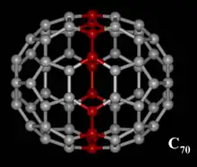 Le fullerène C70 est une substance de type fullerène dont les molécules sont constituées de 70 atomes de carbone. Ceux-ci forment une cage dont la surface en forme d'ellipsoïde est matérialisée par 25 hexagones et 12 pentagones, chaque sommet de cette structure étant occupé par un atome de carbone et chaque côté par une liaison chimique. L'ensemble forme une structure semblable à celle du buckminsterfullerène, ou fullerène 60, emblématique de cette famille de molécules. La synthèse en 1985 de ces variétés allotropiques du carbone a valu à ses auteurs le prix Nobel de chimie 1996[4].