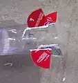 - avec un volet plaqué contre la fusée qui s'ouvrira lors de la perte de vitesse de la fusée (par la traction d'un élastique), libérant ainsi le parachute ;