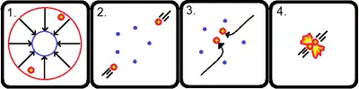 La fusion nucléaire se réfère à des réactions dans lesquelles des noyaux légers sont fusionnés pour former des noyaux plus lourds. Ce processus change de la masse en énergie, qui peut être capturée pour fournir l'énergie de fusion. De nombreux types d'atomes peuvent être fusionnés. Les plus faciles à fusionner sont le deutérium et le tritium. Cela se produit lorsque les ions ont une température d'au moins 4 keV (kiloelectronvolts), soit environ 45 millions de kelvins. La seconde plus simple réaction de fusion est celle du deutérium avec lui-même. Comme ce gaz est moins cher, c'est le carburant couramment utilisé par les amateurs. La facilité de faire une réaction de fusion est mesurée par sa section efficace[24].