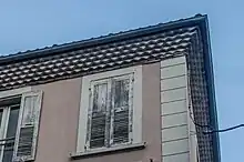 La génoise est une « fermeture d'avant-toit » (la face inférieure d'un avant-toit)[1] formée de plusieurs rangs (de un à quatre, rarement plus) de tuiles-canal en encorbellement sur le mur.