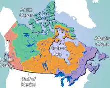 Les principaux bassins versants du Canada sont les suivants : les bassins de l'Atlantique, du Pacifique, de l'Arctique, de la baie d'Hudson et du golfe du Mexique.