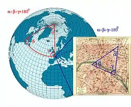La formalisation mathématique est dérivée de l'exemple illustré dans la figure. Si l'étude se résume à une zone suffisamment petite, alors il est possible d'utiliser une carte plane, c’est-à-dire une représentation euclidienne. En se rapprochant suffisamment du point d'étude, celle-ci donne une représentation d'une précision aussi grande que voulue. Ainsi, un plan de Paris ne sera jamais rigoureusement exact car sur une sphère la somme des angles d'un triangle est toujours supérieure à 180 degrés. Cependant, la dimension de Paris (relativement à celle de la Terre) est suffisamment petite pour que l'erreur soit négligeable.