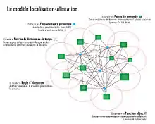 Pour faciliter la recherche d’implantation, différents modèles baptisés modèles de localisation-allocation ont été mis au point. La question fondamentale soulevée par ces modèles est de savoir comment approvisionner ou servir au mieux une aire géographique vaste à partir d’un nombre limité de points de vente.