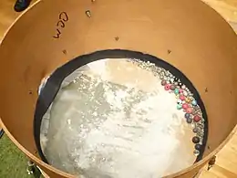 « Le géophone est constitué de deux peaux tendues sur un cercle de bois à l'intérieur duquel sont jetées de petites billes de plomb et qui évoque le bruit de la mer. » - Thomas Adès, « Asyla », sur Faber Music (consulté le )