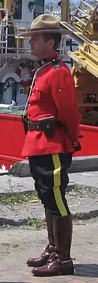 L'uniforme provenait originellement des magasins de la milice canadienne et comportait plusieurs variantes, selon la milice de provenance, mais fut rapidement standardisé. Des épaulettes bleues furent ajoutées durant les années 1920 après avoir obtenu le titre "Royal", remplaçant des épaulettes écarlates à bord doré. Les pantalons étaient initialement chamois mais les membres de la NWMP échangeaient souvent avec les troupes américaines le long de la frontière et la couleur bleue de pantalons utilisés maintenant pourrait provenir de là. La bande jaune est une autre tradition britannique. Les policiers de rang inférieurs à inspecteur portent des gorgerins bleus stylisés sur le collet. Les officiers supérieurs ont un collet bleu plein et des manches se terminant par des pointes bleues.