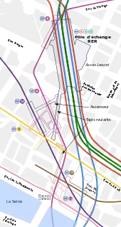La gare permet la correspondance avec cinq lignes de métro, et constitue, avec les 3 lignes de RER, le nœud central du réseau de transport en commun d'Île-de-France. Aux deux extrémités de la gare, les correspondances sont établies de la façon suivante :