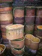 Dans les fours à porcelaine européens du XIXe siècle, les gazettes sont des étuis de forme cylindrique en terre cuite réfractaire. Ces étuis s'empilent les uns sur les autres et contiennent, séparées par des rondeaux ou supportées par des pernettes, les pièces des futures porcelaines ayant subi leur première cuisson à 900 °C. Rondeaux et gazettes protègent des flammes et des retombées de cendres les objets soumis à une deuxième cuisson de grand feu à 1 380 °C[2]. Dans un four comme le four de Casseaux de Limoges, monument historique, les masses enfournées peuvent être considérables : 5 tonnes de porcelaine et 35 tonnes de gazettes.