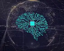 - À différencier du thème des robots, le support physique étant secondaire dans l'histoire par rapport au processus de mentalisation ainsi que les fonctions cognitives mises en œuvre. La première expérience de science-fiction dans ce domaine n'est pas une œuvre de littérature mais une supercherie s’apparentant à un spectacle de magie : le Turc mécanique. C'est au moment où l'informatique commence à se développer, au moment de la seconde guerre mondiale, que ce thème apparait dans la littérature avec A. E. van Vogt et sa saga Le Monde des non-A ; en France citons de Michel Jeury avec La Machine du pouvoir. Ces premières intelligences artificielles (IA, pour « artificial intelligence ») étaient contenues dans d'immenses batisses, possédaient des capteurs un peu partout et demeuraient plutôt bienveillantes vis-à-vis de l'humanité. Un changement de paradigme brutal se produit avec la sortie en 1968 du film 2001, l'Odyssée de l'espace, celui-ci fixant un nouveau rapport entre l’humanité et l’IA dénommée HAL 9000 — le roman homonyme a été écrit en parallèle par Arthur C. Clarke. L'IA apparaissait dans la nudité d’un œil rouge vous fixant où que vous soyez, prête à nuire pour des motifs obscurs mais sans doute en rapport avec une conscience prétentieuse de sa propre supériorité. D'autres œuvres cinématographiques sur ce thème sont : Terminator, Tau, Person of interest, Oblivion, la série télévisée Westworld, Ex machina[26].