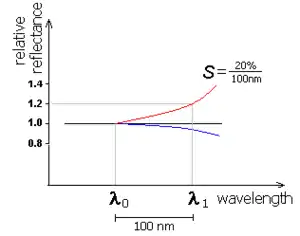 Le gradient est typiquement exprimé en pourcentage d'accroissement de la réflectance (i.e. réflexivité) par unité de longueur d'onde : %/100 nm (ou % /1000 Å).