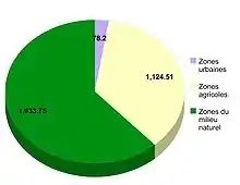 La répartition des sols de la commune est la suivante[20] (donnée pour un total de) :