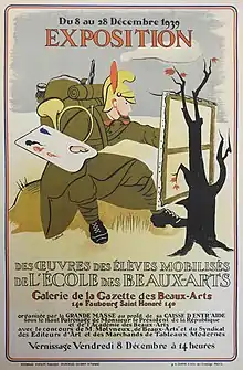 - La guerre impose la nécessité de coordonner les œuvres de bienfaisance. Avec l’aide du Comité des étudiants américains de l’École des beaux-arts, les étudiants des Beaux-Arts récoltaient de l’argent pour les élèves au Front. Cela permettait d’envoyer des colis aux mobilisés et d’éditer les « gazettes aux armées ».