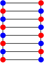 Lorsque l'on relie, dans un graphe en échelle, le premier et l'avant-dernier ainsi que le deuxième et le dernier nœud sont reliés l'un à l'autre par une arête supplémentaire, on obtient l'ensemble d'arêtes