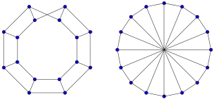 et on obtient un graphe en échelle cyclique (anglais : circular ladder graph), noté . Un graphe en échelle cyclique est le produit cartésien d'un graphe linéaire avec un graphe cycle ; il est donc 3-régulier pour . Les graphes en échelle cycliques sont les graphes polyédriques de prismes et sont également appelés graphes prismatiques ou graphes de prisme (anglais : prism graphs).