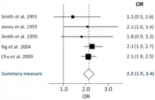 Un graphique en forêt[1], en anglais a forest plot, est une représentation graphique utilisée dans les revues systématiques ou méta-analyses en médecine. Il permet de comparer les résultats issus de différentes études qui abordent la même question.