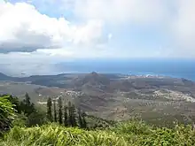 Vue d'une entrée du parc national d'Ascension, Green Mountain culminant en arrière-plan. | ||||