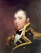 Le gouverneur-général, George Prévost, reçut l’instruction de lancer une invasion dans la région de New York et du Vermont. Il avait une grande force d’invasion, beaucoup plus puissante que celle des Américains. Cependant, une fois arrivé à Plattsburgh, il retarda l’attaque jusqu’à l’arrivée d’une flotte dirigée par le capitaine George Downie[86], à bord de la frégate HMS Confiance achevée dans la hâte[87]. Prévost força Downie à lancer une attaque prématurée, mais il ne réussit pas à lui fournir le soutien militaire promis. Cet échec conduisit à la défaite de la flotte et à la mort de Downie lui-même lors de bataille de Plattsburgh le [86],[87]. Les Américains eurent dès lors le contrôle du lac Champlain. Sans sa flotte, Prévost ordonna de rebrousser chemin puisqu'il croyait trop dangereux que les Britanniques restent en territoire ennemi après la perte de leur suprématie navale[86].