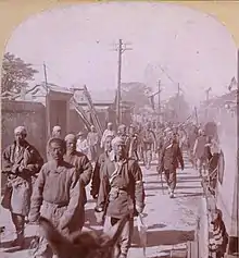Le , les autorités chinoises acceptent de dissoudre la Société des Boxers[24]. Afin d'apaiser les puissances étrangères, l'impératrice Cixi donne l'ordre aux troupes impériales de participer à la répression des Boxers.