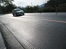 Les autorités routières (en France la DDE) entreprirent alors de redonner de « l'accroche » au revêtement en le rainurant longitudinalement avec des équipements du type disques à découper le béton (comme de gigantesques scie circulaires) montés en parallèle sur un engin de chantier. Ces rainures longitudinales limitèrent effectivement les téléscopages et pertes de contrôle des véhicules à 4 roues mais créèrent des accidents avec les motos (des guidonnages incontrôlables et impressionnants, parfois des chutes à haute vitesse).