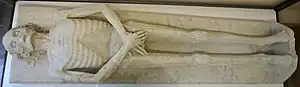 Son gisant transi, montrant le corps du défunt en cours de décomposition, se trouve au musée de Laon et a été restauré en 2003[3]. Il avait laissé par testament de grands biens à l'église de Laon et demandé qu'une sculpture soit faite de son corps un an après son décès. Il était initialement enterré en la chapelle des Cordeliers de Laon. Son tombeau, qui comprenait un sarcophage en marbre noir et des inscriptions en lettres d'or, a été détruit lors de la Révolution française. En 1791, sa ré-inhumation est autorisée et se fait en la cathédrale. En 1841, son corps et son gisant sont exhumés mais le coffre en plomb contenant ses restes est alors égaré. Le conseil de la fabrique fait don du transi pour le musée municipal qui se crée et il est présenté en la chapelle des Templiers. Il se trouve actuellement dans la première salle du rez-de-chaussée, qui lui est dédiée.