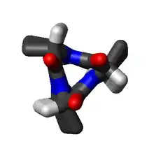 Une hélice 310 est un type de structure secondaire des protéines susceptible de se former aux extrémités des hélices α ou de manière isolée. Les hélices 310 constituent environ 10 % des domaines hélicoïdaux des protéines globulaires[1]. Il s'agit d'une hélice droite dans laquelle chaque tour d'hélice contient trois résidus d'acides aminés et dix atomes dans les cycles formés par les liaisons hydrogène[2]. Une hélice 310 est ainsi définie par la présence d'une liaison hydrogène entre le groupe NH d'un acide aminé et le groupe CO de l'acide aminé situé trois résidus plus tôt ; la répétition de telles liaisons hydrogène i + 3 → i définit l'hélice 310. Il existe d'autres structures du même type, notamment l'hélice α (liaison hydrogène i + 4 → i) et l'hélice π (liaison hydrogène i + 5 → i).