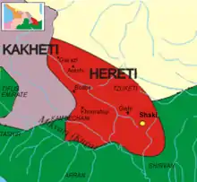 L’Héréthie a constitué une petite principauté indépendante dont la capitale était Shaki. Selon la Chronique géorgienne, le pays partageait la croyance de l'Arménie et de l'Albanie du Caucase jusqu'au règne d'Ichkhanic fils du « Patrice Adarnassé » et de la reine Dinar (sœur d'un « Gourgen, éristhaw des éristhaws » ) grâce à qui il abandonne l'« hérésie » pour revenir dans l'Église orthodoxe du Concile de Chalcédoine[1].