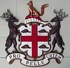 Le cimier des armes de Windsor comporte un cerf qui tient un collier de wampum autochtone et une roue d'automobile, symbole de l'industrie de la ville.