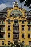 Il est reconstruit une première fois en 1900[1] et à nouveau sous un aspect monumental en 1905 dans le style Art nouveau par Quido Bělský, constructeur, Bedřich Bendelmayer, Alois Dryák, Bohumil Hypšman et Jan Letzel, artistes de qualité, sur l'artère principale de Prague.