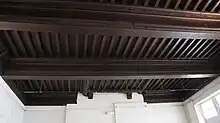 Au premier étage, face à l'escalier, se trouve l'ancienne salle de réception aujourd'hui salle de conférence. Cette pièce occupe toute la largeur du bâtiment et possède un très beau plafond aux poutres d'une taille imposante.