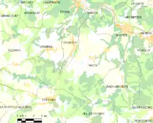L'occupation des sols de la commune, telle qu'elle ressort de la base de données européenne d’occupation biophysique des sols Corine Land Cover (CLC), est marquée par l'importance des forêts et milieux semi-naturels (48,9 % en 2018), une proportion identique à celle de 1990 (49,1 %). La répartition détaillée en 2018 est la suivante : forêts (48,9 %), zones agricoles hétérogènes (18,5 %), terres arables (17,1 %), prairies (11,2 %), zones urbanisées (4,3 %)[17]. L'évolution de l’occupation des sols de la commune et de ses infrastructures peut être observée sur les différentes représentations cartographiques du territoire : la carte de Cassini (XVIIIe siècle), la carte d'état-major (1820-1866) et les cartes ou photos aériennes de l'IGN pour la période actuelle (1950 à aujourd'hui)[Carte 3].