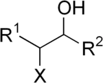 En chimie organique, les halohydrines ou halogénoalcools sont une famille de composés organiques dérivés halogénés des alcools. Selon la définition de l'IUPAC, ce sont des « alcools substitués par un atome d'halogène sur un carbone saturé qui ne porte autrement que des atomes d'hydrogène ou des groupes hydrocarbyle »[1]. Le terme « halohydrine » est souvent restreint aux seuls β-halogénoalcools, c'est-à-dire les composés où le groupe hydroxyle et l'atome d'halogène sont portés par des atomes de carbone voisins (vicinaux). Comme la définition ne s'applique qu'aux composés saturés, elle exclut par exemple les composé aromatiques tels que le 2-chlorophénol. Les halohydrines peuvent-être sous-catégorisées selon la nature de leur atome d'halogène, respectivement en fluorohydrines, chlorohydrines, bromohydrines et iodohydrines.