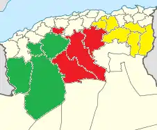 - l'Ouest : ce territoire est constitué par les wilayas de Tiaret, Saida, Naâma et El Bayadh.