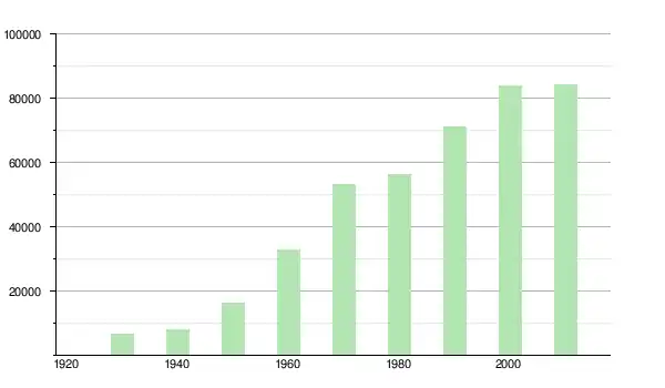 | 1960 | 33 035 | ▲ +102,47 % | |