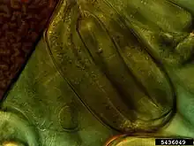 Œufs d'Heterodera dans une feuille de mûrier.