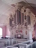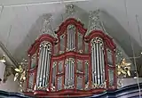 II/p | 13 | Création mit Haupt- und Brustwerk; Le postif de dos in der Brüstung est à trappe; Gehäuse mit originalen Prospektpfeifen erhalten, deren Eselsrücken-Labien auf ein älteres Datum hinweisen (probablement gothique tardif). ![]() |