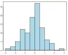 En statistique, un histogramme est une représentation graphique permettant de représenter la répartition empirique d'une variable aléatoire ou d'une série statistique en la représentant avec des colonnes correspondant chacune à une classe et dont l'aire est proportionnelle à l'effectif de la classe[1].
