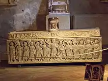 Si la destitution d'Héros ne fait pas de doute, celle de Lazare fait davantage débat. Selon certains, deux ans après, en 413, Lazare est encore à la tête de l'épiscopat aixois et fait construire un baptistère dans son groupe épiscopal, à côté de l'ecclesia major[24]. Historiens et archéologues estiment pour la plupart que le site originel de ce groupe épiscopal se situe à Notre-Dame de la Seds. Un siècle plus tard environ, alors que le forum antique est détruit, ainsi que d'autres bâtiments publics sans doute, un groupe épiscopal, qui deviendra la cathédrale d'Aix, est construit[25].