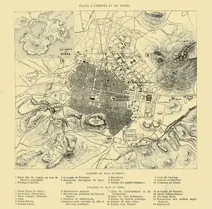 En 1801, Athènes était la 43e ville de l'Empire ottoman. Ses 13 000 maisons sur et au pied de l'Acropole étaient entourées d'un mur d'environ 3 m de haut qui servait autant à la protéger des klephtes qu'à matérialiser ses limites fiscales[21].