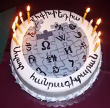 Un des nombreux gâteaux réalisés afin de célébrer les 10 ans de Wikipédia[62].