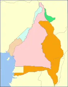- Altkamerun et Kamerun allemand (1884-1916), Cameroun français (1916-1960), Cameroun britannique (1922-1961)