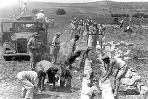 En 1937, la commission Peel condamne la violence arabe et propose un plan de partition, qui est rejeté par les représentants arabes. Haj Amin al-Husseini intensifie la révolte, durant laquelle de nombreux juifs seront tués[53]. Après les propositions de partition du mandat, des attaques, parfois terroristes, sont soutenues par les États arabes voisins.