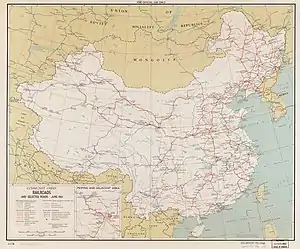 En fait, lors de la création de la RPC en 1949, la Chine avait construit 27 380 km de chemin de fer, mais seulement 24 090 km avaient été conservé, dont 10 309 km dans la partie nord-est de la Chine et 919 km à Taiwan[11].