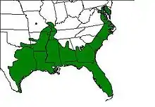 Cette espèce est endémique des États-Unis. Elle se rencontre dans les États de l'Est :