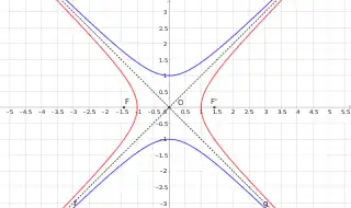 - Pour l'hyperbole avec le point fixe E = (1 ; 0) la somme des points et est le but sous la paramétrisation et cette addition correspond à l'addition du paramètre t[6].