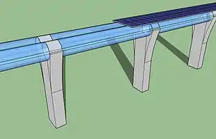 Il imagine même rendre le système auto-suffisant en plaçant des panneaux solaires sur les tubes, voire générer un surplus d'énergie si l'Hyperloop consomme moins que l'électricité accumulée. Il l'oppose au projet California High-Speed Rail qu'il juge catastrophique car, avec son coût de 60 milliards de dollars, il estime qu'il serait « le plus lent de sa catégorie et le plus cher au kilomètre ».