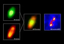 Les particules de poussières ont tendance à s'agglutiner ensemble dans l'environnement très dense du disque, menant à la formation de particules plus grandes, jusqu'à plusieurs centimètres de grosseur[52]. Les traces de la création de cette poussière et de sa coagulation peuvent être observées dans le spectre infrarouge des jeunes disques[18]. Cela peut mener à la formation de planétésimaux mesurant plus de 1 km de diamètre, qui sont les éléments à la base de la formation des planètes[1],[52].