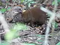 Il se nourrit de fruits tombés sur le sol et de petits invertébrés.