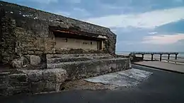 - certains obstacles de plage constitués de troncs d'arbres, fichés de biais dans le sol et reposant sur un poteau, ont été placés à l'envers : la partie inclinée de l'ouvrage aurait dû faire face à la mer[27] pour que les barges de débarquement alliées glissent dessus et fassent exploser la mine placée au sommet[28]. Le général allemand Erwin Rommel avait conçu ces ouvrages en supposant que les Alliés chercheraient à débarquer à marée haute, pour se mettre rapidement à couvert au pied du cordon dunaire. À marée basse, ces dispositifs ne jouaient plus aucun rôle ;