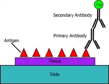 Si l'immunomarquage sert à révéler une information sur une cellule ou ses structures, on parle d'immunocytochimie[1]. L'immunomarquage de structure plus grande (tissus, organes) est appelé immunohistochimie[1]. L'immunomarquage est notamment utilisé en anatomie pathologique, en complément de l'analyse morphologique des tissus, afin d'identifier les différents types de tumeurs. L'immunophénotypage est l'identification des populations cellulaires par la technique d'immunomarquage.