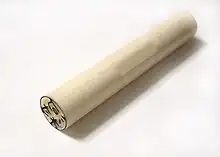 Hanko (判子) ou Inkan (印鑑, l'empreinte du sceau, mais souvent utilisé comme synonyme de hanko) sont les mots japonais désignant le sceau utilisé au Japon, par les particuliers ou les entreprises, pour signer ou valider tout type de document ou estampe, ou correspondance (personnelle ou administrative)[4]. Son lointain équivalent en occident serait le timbre en caoutchouc, mais il n'en a ni le caractère solennel ni le caractère très personnel.